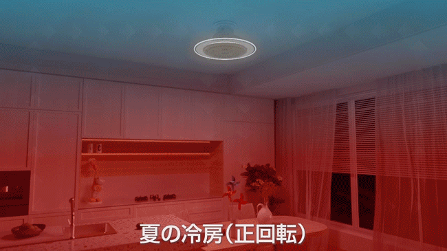 冷たい空気を上に吸い上げ、上からの暖かい空気を下に促すため、部屋の上下の温度差が少なくなり、より快適な空間が生まれます。