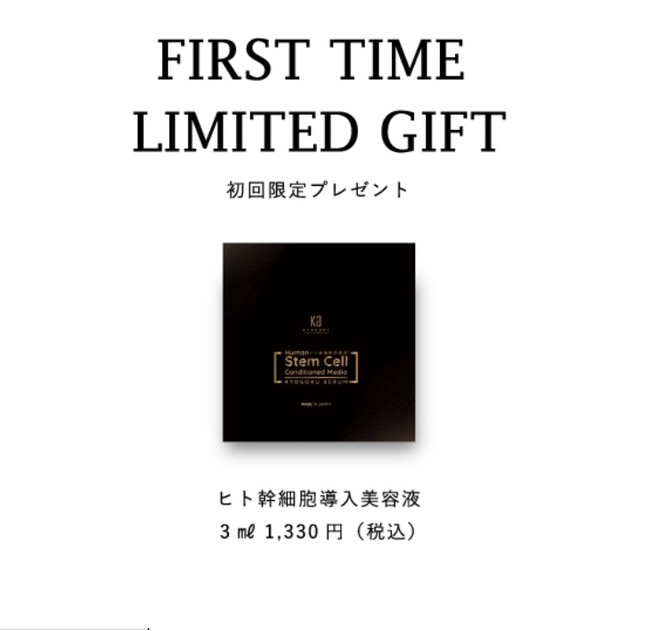 初回お買い上げ限定で、人気のヒト幹細胞導入美容液をプレゼント!