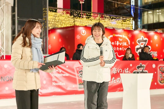 2026年ミラノ・コルティナ五輪でスピードスケートの競技解説を務める高木菜那さんからは「スピードスケートに関わらず素晴らしい選手が多いので、今までで一番多くのメダルが期待できるのでは」とのコメントも。イベントの後半には、スケート靴に履き替えた高木菜那さんと小学生スケーターが “滑り初め点灯式”にも参加。4人の小学生から“光るバトン”を受け取って点灯ボタンを押すと、さっぽろテレビ塔が赤と青のスペシャルバージョンにライトアップ!賑やかにイベントの開幕を告げました。