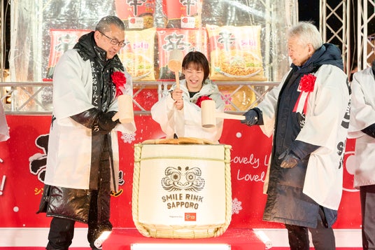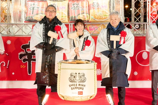 スマイルリンクさっぽろ実行委員会(北海道札幌市 会長:鶴井亨(北海道文化放送株式会社 代表取締役社長))は、『スマイルリンクさっぽろ Supported by 辛ラーメン』の開幕前夜の1月27日(火)、大通公園3丁目でオープニングセレモニーを開催しました。