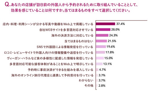 その結果、拡大するインバウンド外食市場を取り込めていない飲食店が多く存在する一方で、取り込めている飲食店では「旅マエ予約」の導入が進んでいることが明らかになりました。