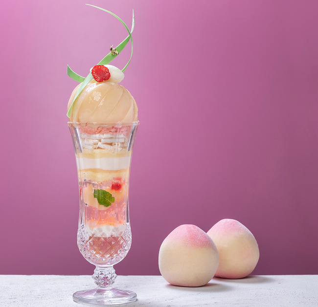 「くだもの王国おかやま」として知られる岡山県の「白桃」をまるごと1個使った白桃パフェ。この時季ならではの逸品をお楽しみいただけます。