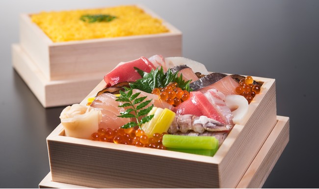 江戸時代、備前岡山藩主・池田光政公の出した倹約令によって贅沢ができなくなってしまった庶民たちが反発してさまざまな魚や野菜を隠し混ぜて食べていたのが由来のかくし寿司。岡山県産の食材を楽しめるお寿司。