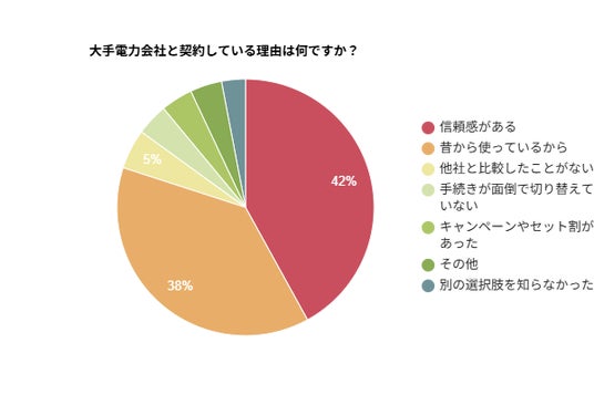 大手電力会社と契約している理由として最も多かったのは「信頼感がある」で42%、次点で「昔から使っているから」が38%でした。
