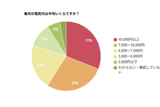 - 大手電力会社を利用している約6割の電気代が「7,000円以上」
