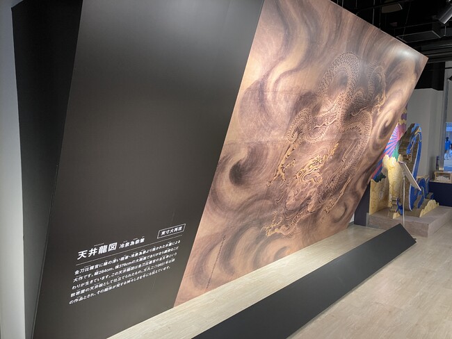 また、普段は非公開である、金刀比羅宮の白書院の天井に描かれている冷泉為恭の大作「天井龍図」を、実寸大で再現したパネルにて紹介します。さらに新年にふさわしく、おみくじや龍に乗ることができるフォトスポットも設置します。ミュージアムショップでは企画展開催にあわせて、普段は販売していない龍やワニグッズを期間限定で販売します。
