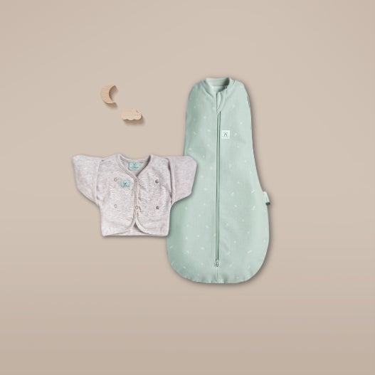 コクーンスリープセットは、新生児用スリープウェアの中でも人気のあるコクーンスワドルバッグとバタフライカーデのセットです。受賞歴のある1.0TOGコクーンスワドルバッグは、室温に合わせて生地の厚みを選べるTOG規格のジッパー付きスワドルで、複雑な巻き方を覚える必要がなく、赤ちゃんが安全に眠れる環境を整えることができます。