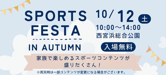 株式会社サップス(本社:兵庫県西宮市、代表取締役社長:中瀬 敏和)及び株式会社ウエルネス阪神(所在地:兵庫県西宮市、代表取締役社長:岡本 直樹)は、阪神園芸株式会社(所在地:兵庫県西宮市、代表取締役社長:久保田 晃司)が指定管理を担う西宮浜総合公園(兵庫県西宮市西宮浜3丁目)で地域住民のウェルビーイングをサポートするため、2024年10月12日(土)に「SPORTS FESTA IN AUTUMN」イベントを開催します。