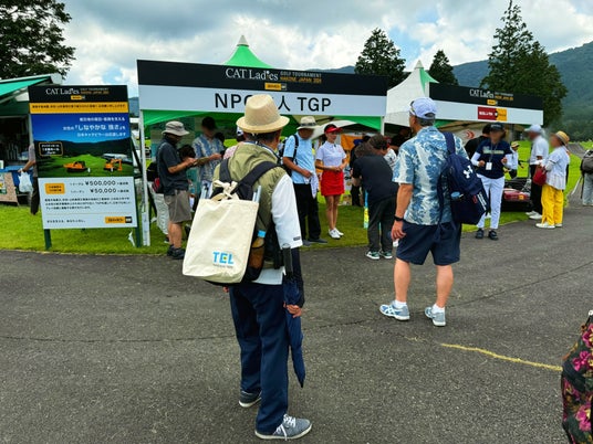 「CAT Ladies 2024」内でTGPのテントを設営させていただき、東尾理子の私物のゴルフグッズや、選手のサイン入りボールなどが当たるチャリティーくじを実施し、合計1,381,062円を集めることができました。