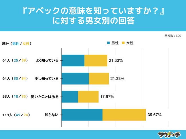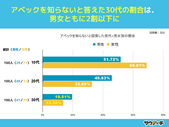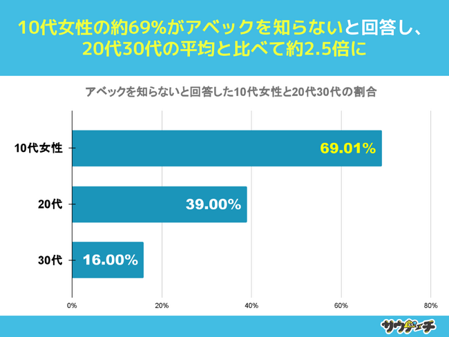 【10代女性の約69%がアベックを知らないと回答し、20代30代の平均と比べて約2.5倍に】