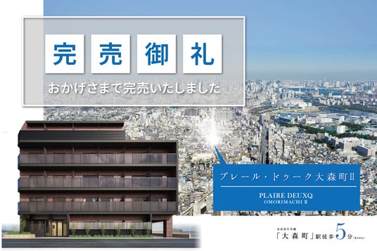 総合不動産事業を展開する株式会社 木下不動産(本社:東京都新宿区、代表取締役社長:坂本 建士)は、都市型収益用マンション「プレール・ドゥーク 大森町II」の完売(全43戸、決済完了)をお知らせします。