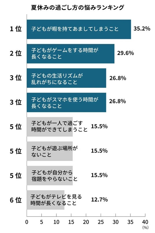 保護者が夏休みの過ごし方について具体的にどのような悩みを抱えているのか、ランキングで解説します。