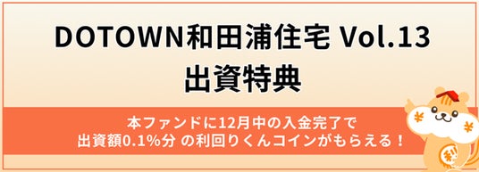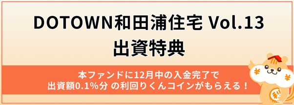12月中にご入金いただくと、出資額の0.1%分の利回りくんコインを進呈いたします。