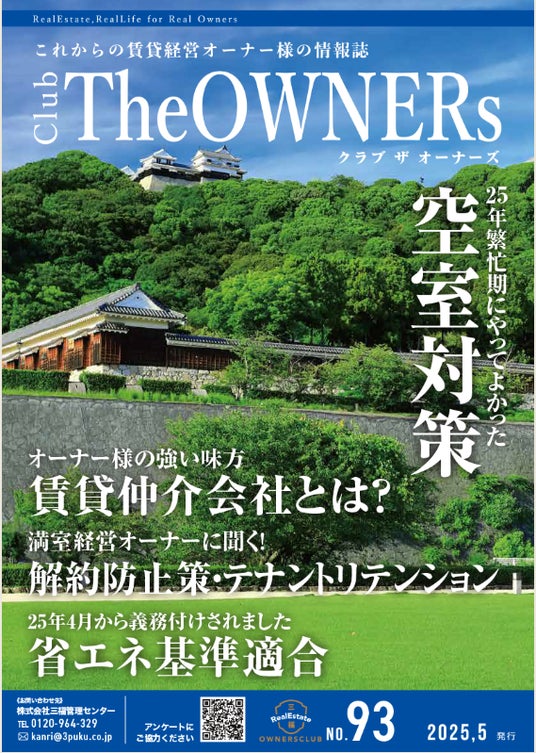株式会社三福管理センター(本社:愛媛県松山市、代表取締役:星川俊一)は、賃貸物件オーナー様向けに、賃貸経営の最新情報をまとめた情報紙『ClubTheOWNERs』を2025年6月に発行いたしました。
