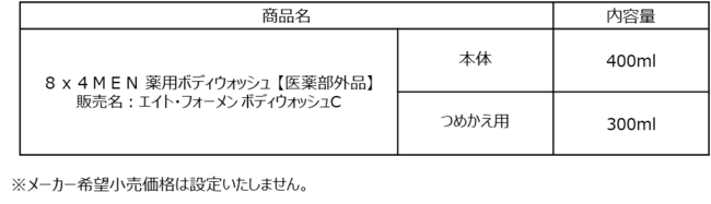 このデオドラント意識の高まりを受け、このたび、男性向け制汗デオドラント剤市場(パウダースプレー、ロールオン、スティック剤型)で売上No.1*1の「8x4MEN」ブランドから、『8x4MEN 薬用ボディウォッシュ』を新発売いたします。 この商品は、足のニオイ汚れまでごっそり洗浄できるのが特長です。