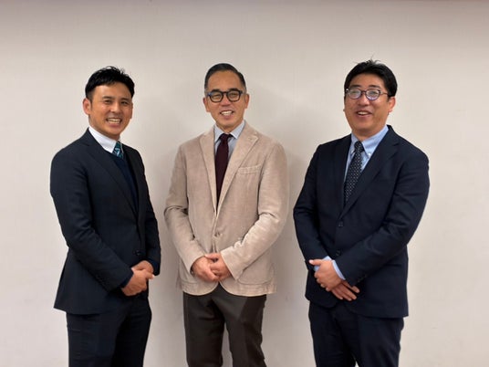 (左から:花まる学習会事業部長 高橋、花まるグループ代表 高濱、花まるAIS事業責任者 相澤)