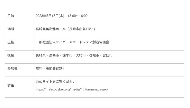(第1回は2019年2月島根県益田市、第2回は2019年7月東京都品川区でスマートシティテクノロジーフォーラムとして開催、第3回は2022年5月デジタル田園都市フォーラムin長崎として開催)