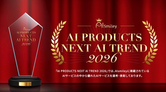 「AI PRODUCTS NEXT AI TREND 2026」は、AIsmileyが2024年11月~2025年12月の独自データを分析し、優れたAIプロダクトを部門別に選出したランキングです。業務効率化・生成AI・RAG・チャットボットなどの各分野において、ビジネス現場での高い実用性と導入効果が認められた価値あるAIサービスが選出されています。