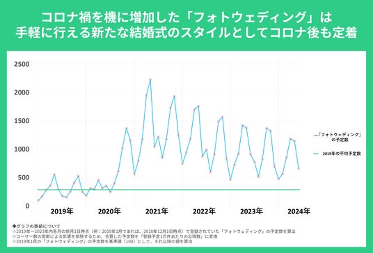 まずは「結婚式」の予定を登録する人の数が2019年から2024年にかけてどのように推移してきたのかを調査しました。