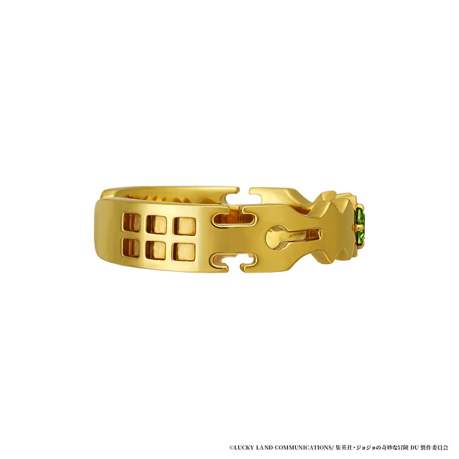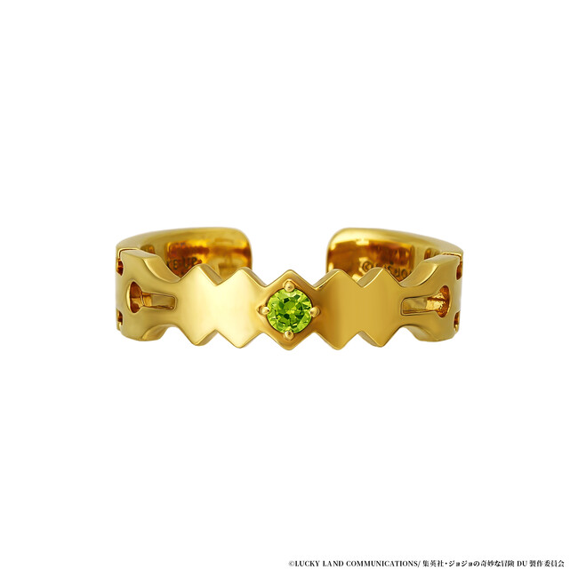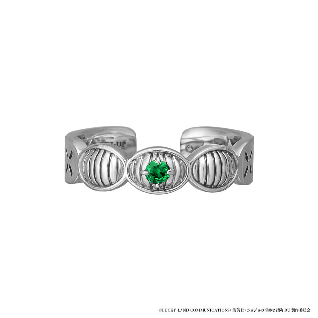 康一のスタンドのエコーズをイメージしたデザイン。康一とエコーズを思わせるグリーンの石が中央で輝きます。ACT1・ACT2・ACT3それぞれが持つ特徴をディテールにこだわってデザインに落としこみ、エコーズを表現しました。