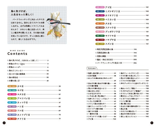鳥類の目をナンバーで表記。コラム一覧も掲載