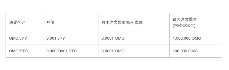 現物取引所の取扱いペアに、下記OMGペアが追加されます。