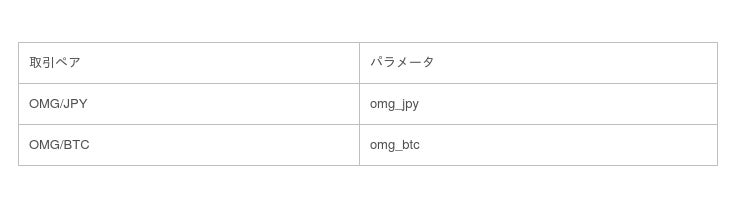 新規追加された取引ペアはそれぞれ以下のとおりパラメータを指定してご利用いただけます。