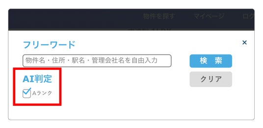 任意の物件が60日以内で入居決定に至るという予測が出た場合、ページ上では「AIオススメ度A」という表記がされます。ご利用ユーザー様はこの表記をもとにダウンロード利用する物件を選定することができます。また、AIによる「A」判定が出た物件だけを表示できる絞り込み機能も同時に実装しております。