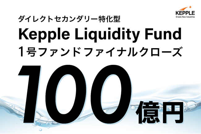 ケップルグループの運営する「Kepple Liquidity 1号投資事業有限責任組合」(以下「当ファンド」)は、国内のダイレクトセカンダリー専門のファンドとしては最大となる総額100億円で、出資の募集を完了したことをお知らせします。
