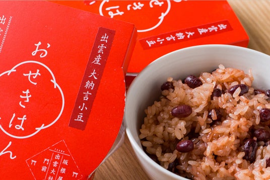 出雲大納言小豆の「おせきはん」、黒豆の「おくろはん」、七種の雑穀と小豆の「ざっこくはん」の3種類を詰め合わせにしてお届け。