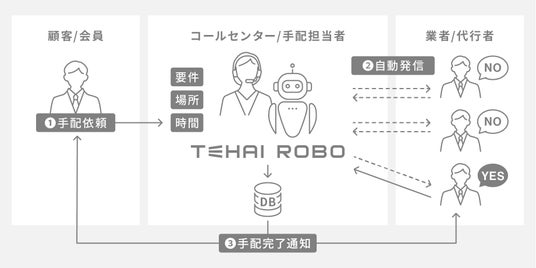 「"テハイ"ロボ」は、ジーエルシーが提供する、業者手配に関わる「架電・FAX」業務を自動化するためのクラウドシステムです。当初は、オペレーターの方々が、ひたすら業者手配の電話を行っているコンタクトセンターの架電業務自動化を念頭に開発されたシステムでしたが、ここ数年の間に、それ以外の業務領域においてもご活用いただいております。