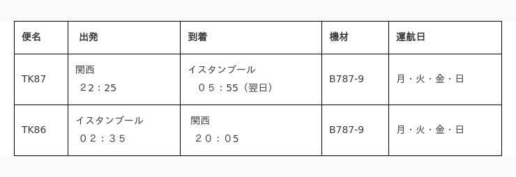 フライトスケジュールは下記もしくは、www.turkishairlines.com よりご参照ください。