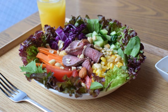 写真ではベビーリーフ、紫キャベツ、トマト、にんじん、きゅうり、コーン、ローストビーフ、ナッツをセレクト。新鮮な生野菜に加えて、濃厚な紫キャベツや甘みのあるコーンが鮮やかな色合いを演出し、視覚的にも楽しめます。中央に添えられたジューシーなローストビーフは、シャキシャキの野菜と絶妙なバランスで、食べ応えも抜群。ナッツやアーモンドのカリッとした食感がアクセントとなり、食べ進めるごとに異なる風味と食感を楽しむことができます。この一皿で、たっぷりのビタミンと良質なたんぱく質が摂れるのも魅力です。