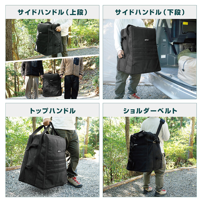 ・サイドハンドル(上段):両手で運搬しやすく、2人でも運搬できる