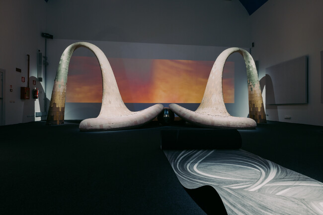 Constance Guisset(コンスタンス・ギセ)による投入型インスタレーション「Scylla」は2019年の展示以来、その迫力のある姿とマテリアルの独特な質感の訴求によって人々を魅了してきました。命を吹き込まれたように見えるタペストリーは、空間の中央に集まったヒレや触手で空間を支配し、ALCANTARA(R)を使用した独特の質感で、その形は特別なキメラの一種のように見えます。