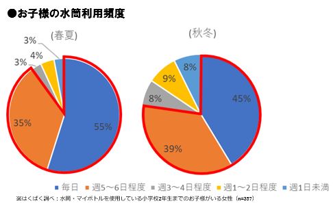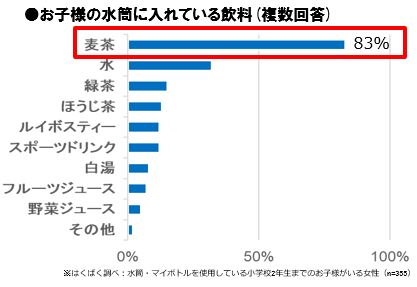 一年通して8割超が「週5~6日以上」水筒使用。中身は「麦茶」が83%で圧倒的