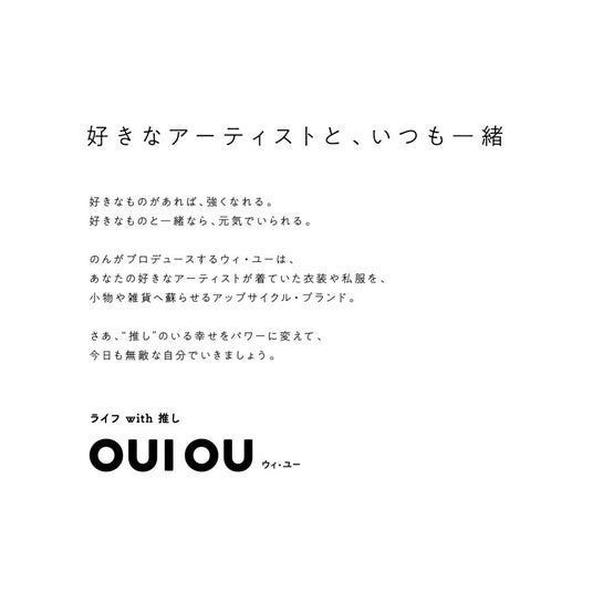 Char氏の所属事務所であるziccaから、のんがプロデュースするアップサイクルブランド・OUI OU(ウィ・ユー)のコンセプトに共感をいただき、コラボレーションが本イベントで実現しました!OUI OUは、推しといつも一緒に過ごせる "ライフ with 推し” をコンセプトに展開し、アーティストのステージ衣装や私服を、クリエイターの手によって1点もののアート作品にアップサイクル。