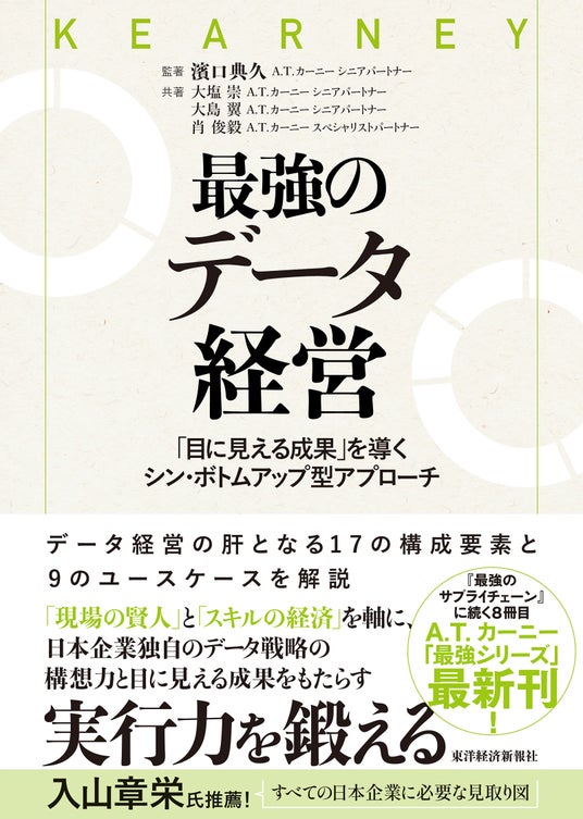 経営コンサルティングのA.T. カーニー株式会社(グローバル・ブランド名はKEARNEY、東京都港区、日本代表:関灘 茂)のシニア パートナー濱口 典久が監修・執筆した書籍 『最強のデータ経営 ~ 「目に見える成果」を導くシン・ボトムアップ型アプローチ』 が、2025年5月14日、東洋経済新報社より発売されます。