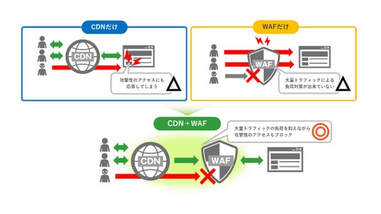 ECサイト、オンラインゲームサイト等、情報を消費者とやり取りする事業者のWebサイトの安定運用には、大量アクセスに対応するCDNや、Webアプリの脆弱性に対応して悪意ある攻撃から防御する
