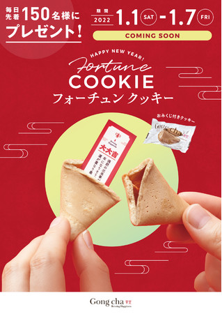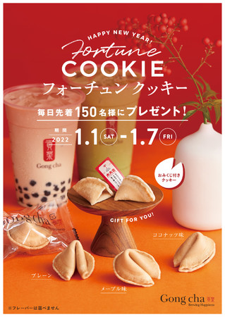 株式会社ゴンチャ ジャパン(本社:東京都渋谷区、代表取締役社長 兼 CEO:角田 淳、以下 GCJ)は、新しい年がお客様にとってHAPPYな一年となるよう願いを込めて、オリジナル「フォーチュン クッキー」をプレゼントいたします。
