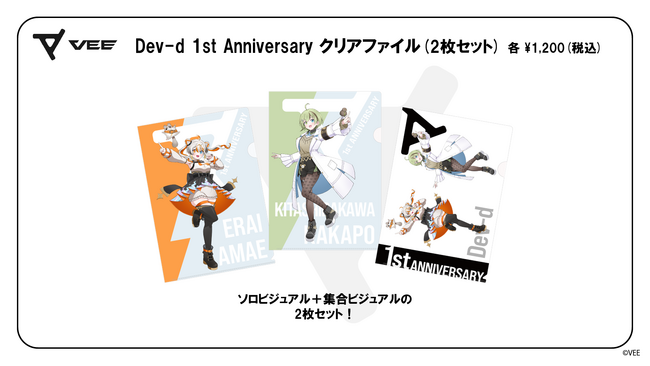 本日・10月24日、Dev-dの2名(偉雷アマエ、北白川かかぽ)のデビュー1周年をお祝いした「1st Anniversary グッズ」の詳細を公開するとともに、公式オンラインショップ「VEE Official Shop」にて販売を開始しました。