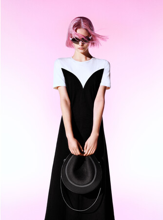 コレクションにはフューシャカラーのプリントドレス、ストラップ付きのブラックドレス、無地のブラックTシャツ、目の錯覚を再現したブラック&ホワイトドレス、ピンクとブルーのラップミニスカート、再構築されたスウェットシャツ、コズミックプリントのジーンズなども展開致します。