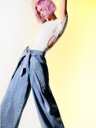 このコレクションの大きな特徴は、メトロピエールにとって不可欠であり、デシグアルlにとっても必須であるサステナブルな繊維のみを使用していることです。オーガニックコットンやBCIコットン、セルロースから生まれた繊維であるNaia(ナイア)を使って生産された衣服は、細部まで丁寧に作られています。デニムのボタンやジーンズの背面ラベルはリサイクルファブリック、レザーアクセサリーはレザー・ワーキング・グループのサステナブルプロセス認証を取得するなど、細部に至るまで配慮が行き届いています。
