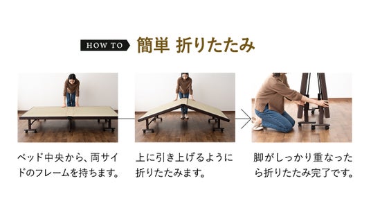 寝室ブランドEMOOR(エムール)から、天然い草を使用した折りたたみベッドが、フレーム構造やサイズ、機能を見直してリニューアルして新登場しました。