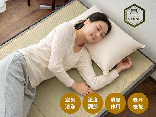 天然のい草は空気清浄、湿度調節、消臭、吸汗といった多機能を備えた素材で、心地よい睡眠環境を整えてくれます。また、い草の香りには、リラックス効果があります。サラッとした肌触りと安らげる香りで、快適な眠りを促してくれます。