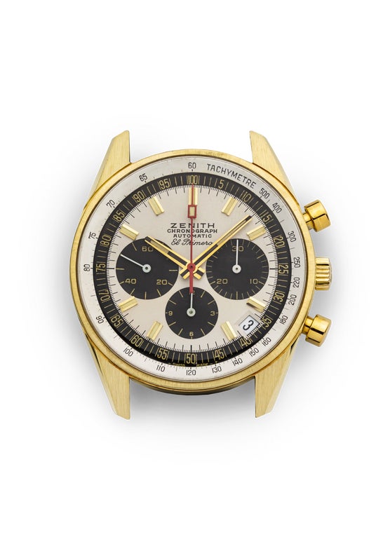 特長:1969年、エル・プリメロの初期モデル。少量生産(総生産数が1000本未満)にもかかわらず、記録的な受注数を達成した人気モデル。クォーツが機械式時計に挑戦し始めた時期に生産されたリファレンスの最後のロットの一つ。アメリカ市場向けに作られ、31石ではなく17石で構成。