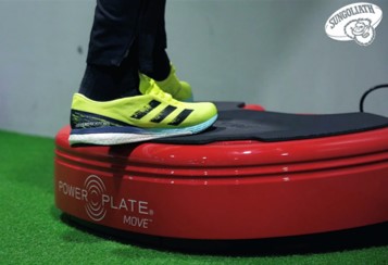 持ち運び可能な「パワープレート MOVE」をチームに提供。全振動トレーニングマシーンで遠征時も選手のコンディションをサポート!