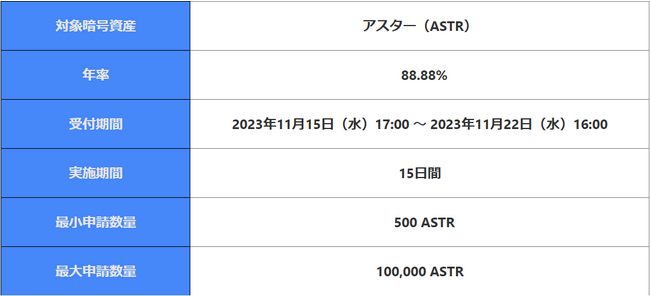 ASTR「預けて増やす!15日間・年率88.88%」のFlash Deal(フラッシュディール)!