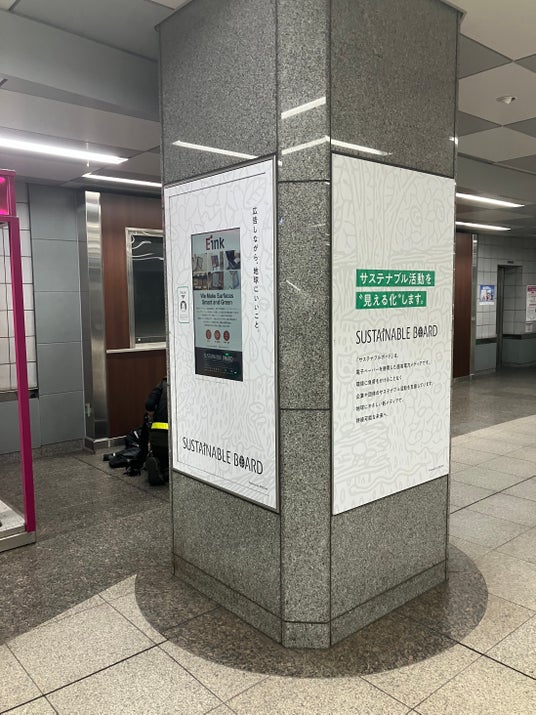 『TOKYO SUSTAINABLE BOARD』は、街や企業のサステナブル情報を発信するために開発された新しいプラットフォームです。表示ディスプレイには、消費電力が極めて小さい電子ペーパー『ミラパレ』を採用し、告知内容だけでなく運用面でもサステナブルなメディアです。