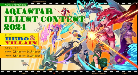 企業のマーケティング課題を、デジタルクリエイティブで解決を行う株式会社アクアスター(所在地:東京都中央区、代表取締役社長:原田 弘良、以下 当社)は、2024年7月8日(月)より大学生並びに専門学校生を対象としたイラストコンテスト2024『HERO & VILLAIN』(以下、HERO & VILLAIN)を開催します。当社は毎年、イラストを学ぶ学生を応援するためにこのコンテストを開催しており、参加者が自らの創造力と技術を発揮し、作品を広く発表する機会を提供しています。特に今年のテーマである『HERO & VILLAIN』は、正義とアンチヒーローという対立するキャラクターを描くことで独自のストーリーを表現する挑戦を求めています。このコンテストでは、映画ポスターをテーマにした作品を募集しており、応募作品は特設サイトに掲載され、一般投票と社内クリエイターによるプロ審査の2つの評価方法で審査されます。これにより、参加者は多くの視点から評価される機会を得ることができ、多様な評価基準での審査を受けることができます。アクアスターは、多様性が重視される現代において、個性溢れる輝くビジュアルを求めています。このコンテストを通じて、学生の才能を発掘し、その成長を支援することを目指しています。